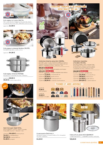39,90 € le panier vapeur 20 cm           à partir de 29,90 € le couvercle en verre ø 14 cm  à partir de 204,90 € la sauteuse ø 24 cm