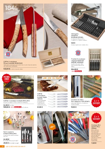 54,95 € le coffret                    crantée de 11 cm.                      ou bois d'olivier.