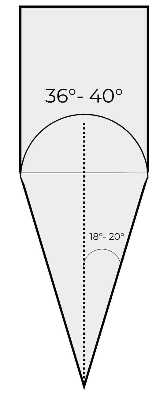 Vous trouverez parfois le terme "angle de coupe". Les couteaux de cuisine sont en général aiguisés des deux côtés, l'angle d'aiguisage sera donc appliqué symétriquement. Par exemple, si un couteau a un angle d'aiguisage de 15°, l'angle de coupe sera de 30°. En somme et en général, l'angle de coupe correspond à deux fois l'angle d'aiguisage.