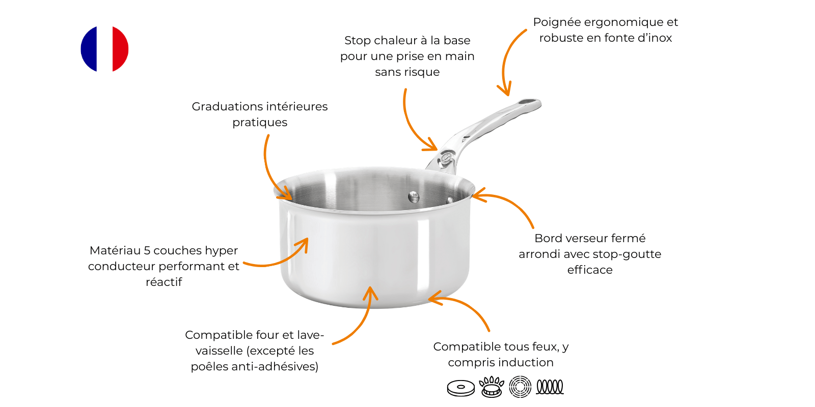 - Polyvalence : compatible à tous types de cuisson, y compris induction.