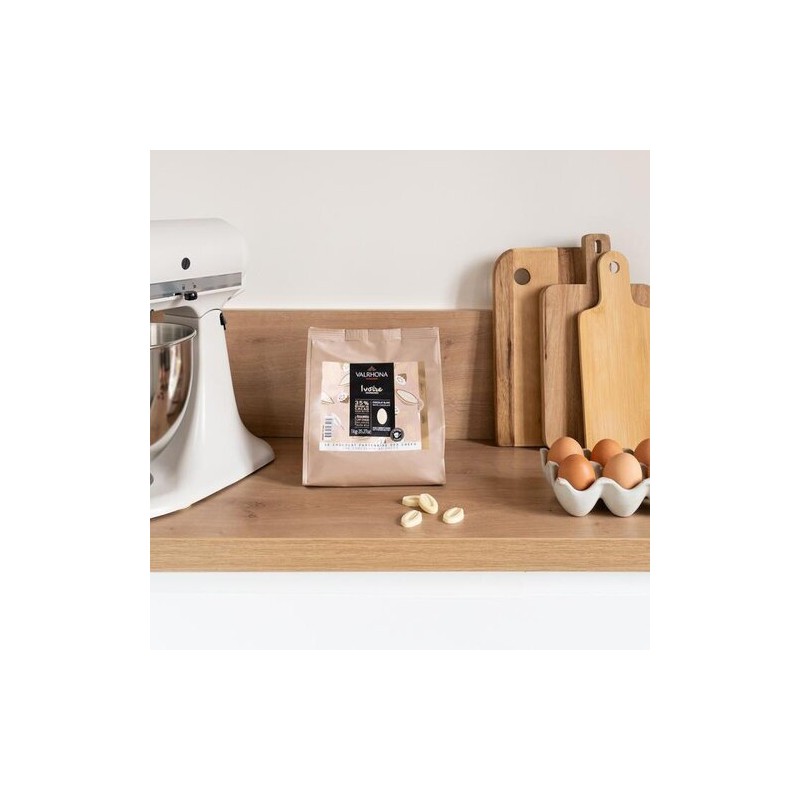 Chocolat blanc Ivoire Valrhona, aux notes équilibrées de lait chaud.