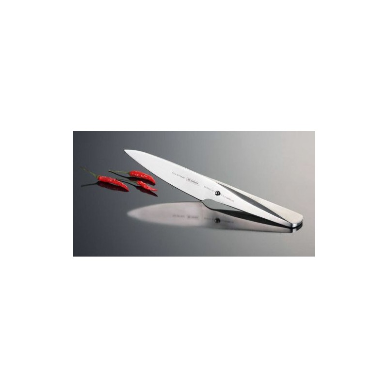 Concernant son utilisation, vous devez réaliser des mouvements de haut en bas, le couteau doit être constamment à l’horizontale. La pointe ne doit pas entrer en contact avec la planche à découper. Il n’est pas recommandé l’utiliser autre que pour les fruits et légumes, sa lame est légère et ne permet pas de couper des aliments durs comme le surgelé ou les os.