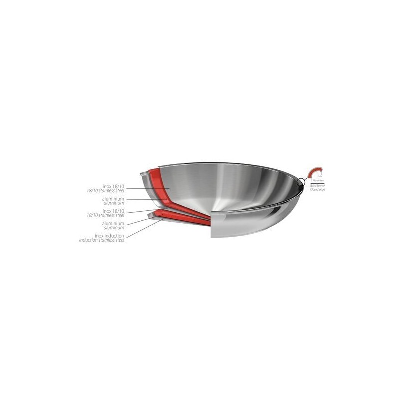 - Fond 5 couches : inox 18/10, aluminium, inox 18/10, aluminium, inox induction.