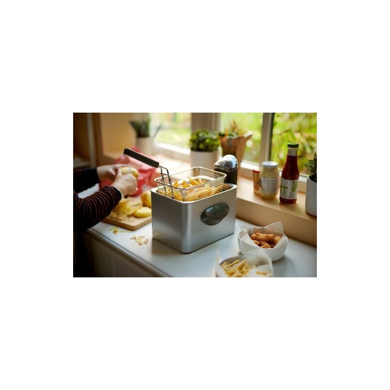 Dotée de 2 filtres complémentaires (anti-graisse et anti-odeurs), la friteuse limite l'évaporation des graisses et des odeurs.