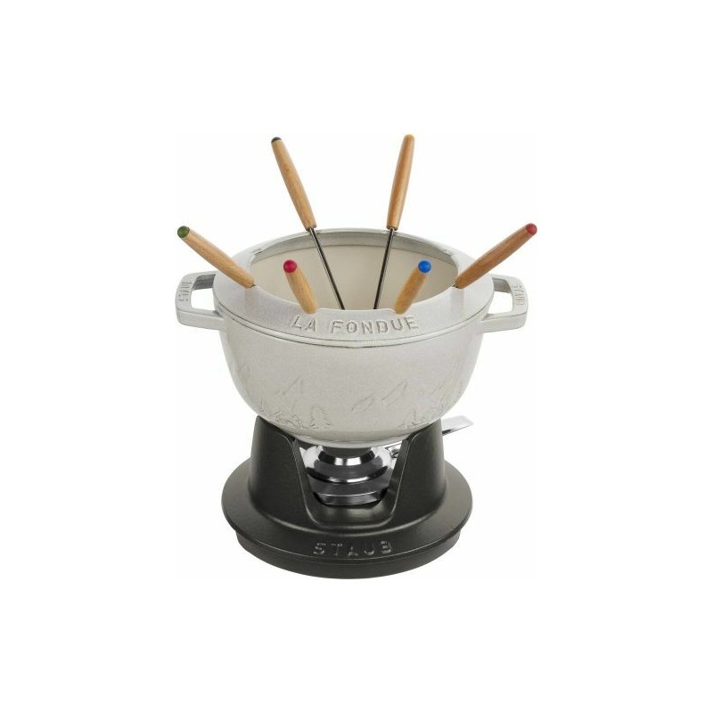 Service à fondue Staub, édition spéciale Montagne, idéal pour préparer une fondue à la viande classique, ainsi qu’une fondue au fromage ou une fondue sucrée au chocolat.