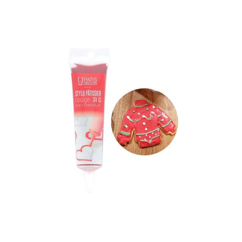Ce crayon pâtissier contenant une garniture rouge aromatisée au chocolat est idéal pour décorer facilement vos gâteaux, cupcakes, biscuits, crêpes, glaces.