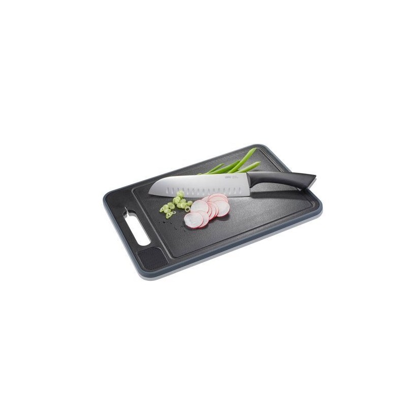 Grâce à son côté en plastique, équipé d'une rainure de jus ingénieuse, vos découpes deviennent plus pratiques et plus sécurisées.