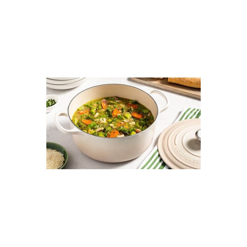 Grande, polyvalente et raffinée, la cocotte Le Creuset meringue 28 cm est conçue pour les amoureux de la cuisine familiale et généreuse.