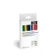 Jaune : Eau, humectant : E1520 Glycol Propylène, arôme vanille alcoolique, régulateur d'acidité : E330 acide citrique, conservateur : E202 sorbate de potassium, colorant : E102 Tartrazine ; Rouge : Eau, humectant : E1520 Glycol Propylène, arôme vanille alcoolique, régulateur d'acidité : E330 acide citrique, conservateur : E202 sorbate de potassium, colorant : E124 Ponceau 4R ; Vert : Eau, humectant : E1520 Glycol Propylène, arôme vanille alcoolique, régulateur d'acidité : E330 acide citrique, conservateur : E202 sorbate de potassium, colorants : E133 Bleu Brillant FCF, E102 Tartrazine ; Bleu clair : Eau, humectant : E1520 Glycol Propylène, arôme vanille alcoolique, régulateur d'acidité : E330 acide citrique, conservateur : E202 sorbate de potassium, colorant : E133 Bleu Brillant FCF ; Rose : Eau, humectant : E1520 Glycol Propylène, arôme vanille alcoolique, régulateur d'acidité : E330 acide citrique, conservateur : E202 sorbate de potassium, colorant : E124 Ponceau 4R ; Noir : Eau, humectant : E1520 Glycol Propylène, humectant : E422 Glycérine Végétale, régulateur d'acidité : E330 acide citrique, colorants : E151 Noir Brillant BN, E110 Jaune Orange S (FCF), *E102 Tartrazine.
