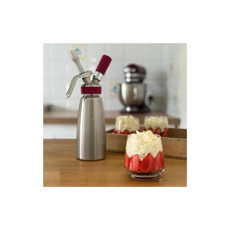 Compatible avec les cartouches de gaz N₂O (non fournies), il permet de réaliser des mousses, crèmes ou sauces onctueuses en un clin d’œil.