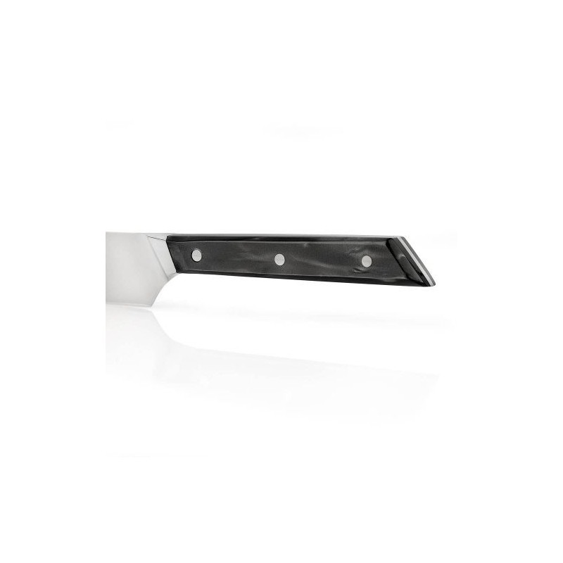 Le manche en méthacrylate noir nacré offre une prise en main confortable et équilibrée.