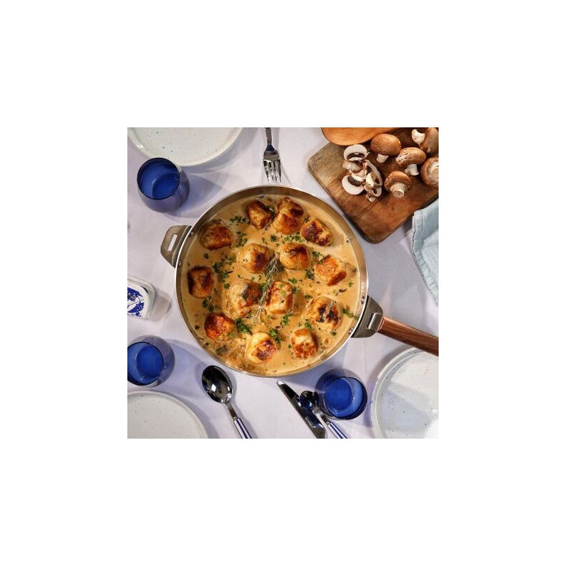 Découvrez La Merveilleuse, une poêle en inox qui révolutionne la cuisine ! Conçue avec un inox 3-plis haut de gamme sans nickel, renforcé en titane et cuivre, et doté d’un cœur en aluminium recyclé, elle offre une cuisson rapide, homogène et précise, sans risque de migration de nickel.