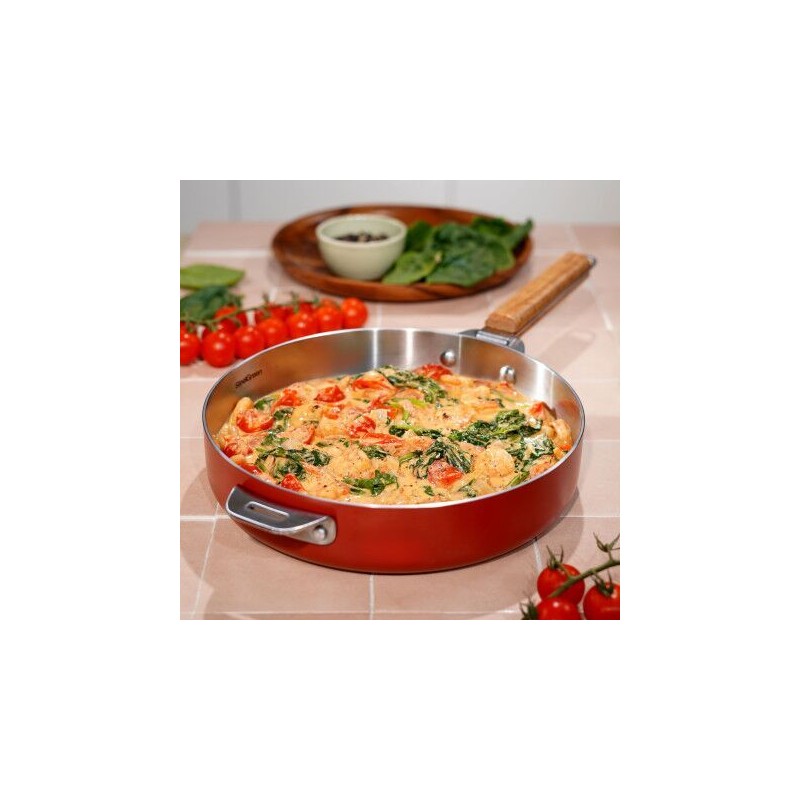 Son rouge passion éclatant apporte une touche d’élégance et de dynamisme à votre cuisine. Associez-la à des poignées amovibles et des couvercles assortis pour une expérience culinaire aussi pratique qu’esthétique.