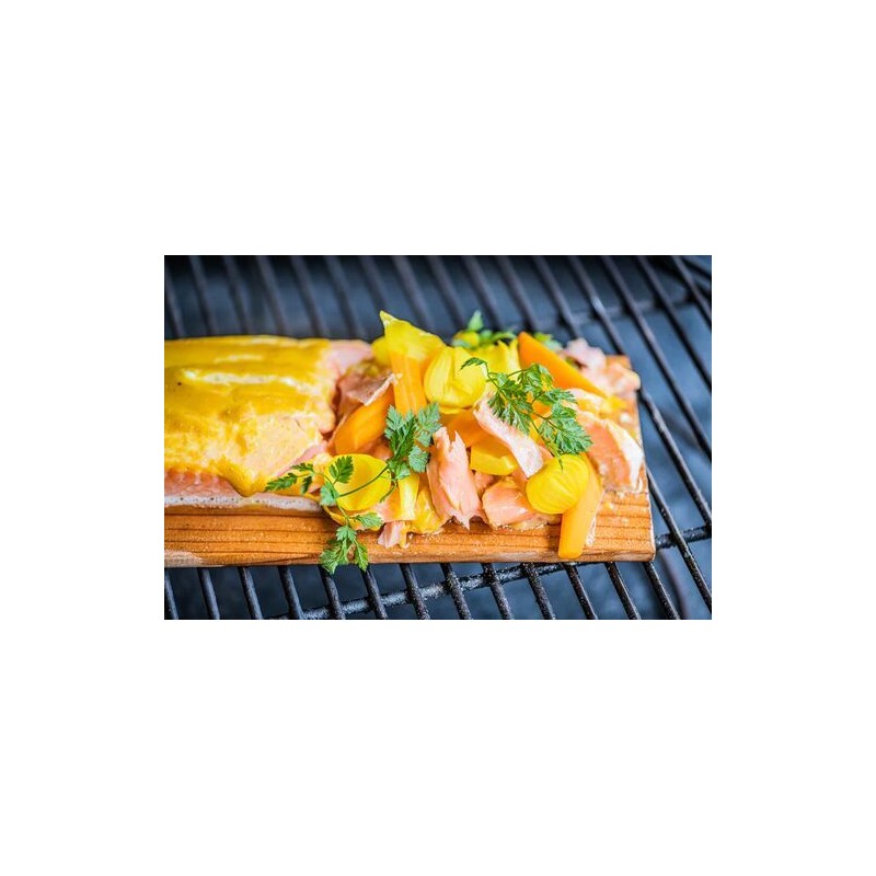 Envie d’apporter une note fumée délicate à vos cuissons au barbecue ? La planchette en cèdre Big Green Egg est l’accessoire indispensable pour parfumer vos filets de poissons, magrets ou légumes, tout en préservant leur tendreté. Naturellement aromatique, le bois de cèdre libère des arômes subtils qui enrichissent vos préparations, sans ajout de matière grasse.