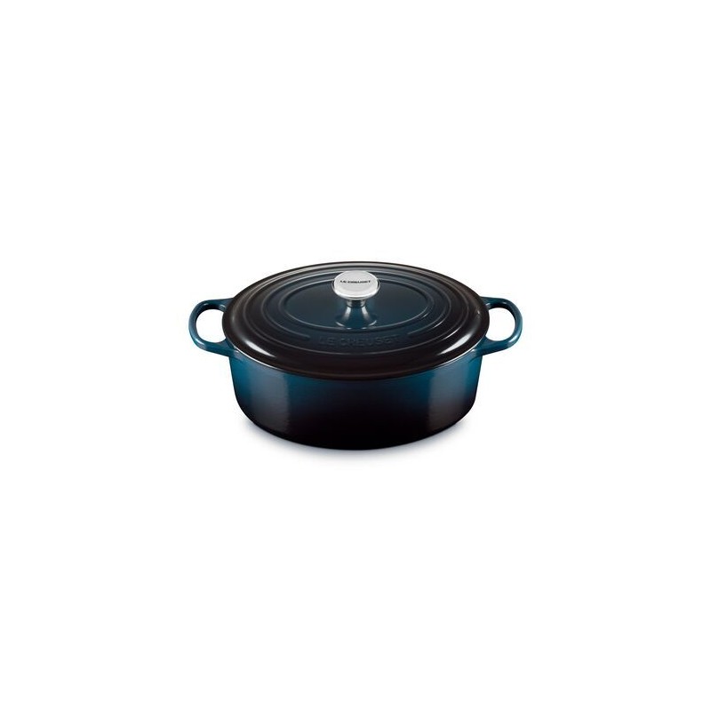Pensée pour les grandes occasions comme pour la cuisine du quotidien, la cocotte ovale Le Creuset Signature 31 cm associe volume généreux et forme allongée pratique. Sa capacité de 6,3 L permet de cuire un gigot entier tout en laissant suffisamment de place pour glisser des légumes ou une garniture autour. Le tout dans un coloris Bleu Nuit profond, aux reflets intenses et élégants.
