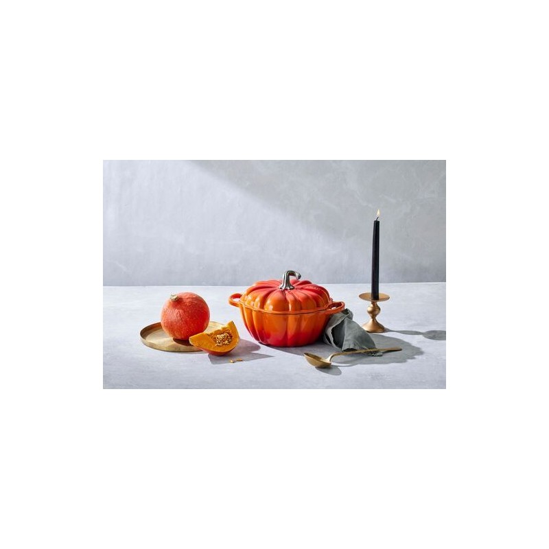 Pensée comme un élément décoratif à part entière, cette cocotte citrouille s’invite au centre de votre table, aussi bien pour un dîner automnal que pour une présentation originale de vos plats festifs. Sa forme organique attire le regard, tandis que sa capacité de 3,7 L permet de préparer facilement des soupes réconfortantes, ragoûts mijotés ou plats familiaux généreux.