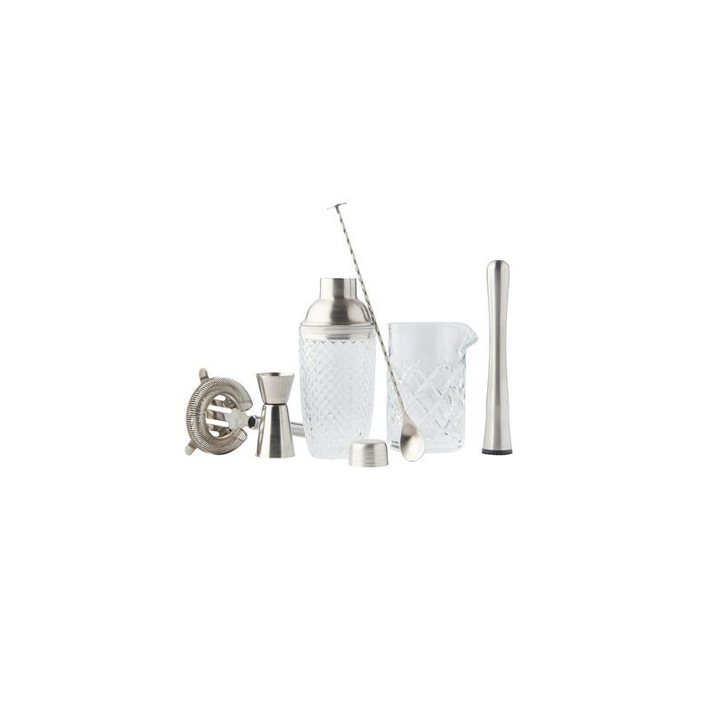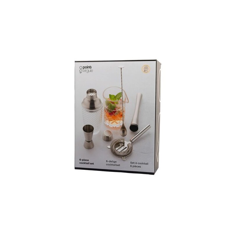 Avec le set à cocktail en verre et inox 6 pièces Point Virgule, transformez chaque préparation en véritable rituel de dégustation. Ce coffret élégant associe la transparence du verre à la robustesse de l’acier inoxydable pour vous offrir des accessoires durables, résistants et hygiéniques.
