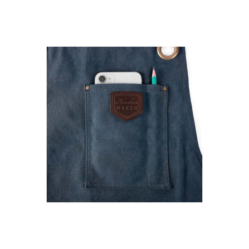 Le tablier coton waxé et cuir n°547 bleu marine combine authenticité et solidité pour accompagner toutes vos activités culinaires et créatives. Confectionné avec une toile cirée déperlante et des finitions en cuir pleine fleur tanné végétalement, il offre confort, résistance et un style affirmé qui fait la différence.