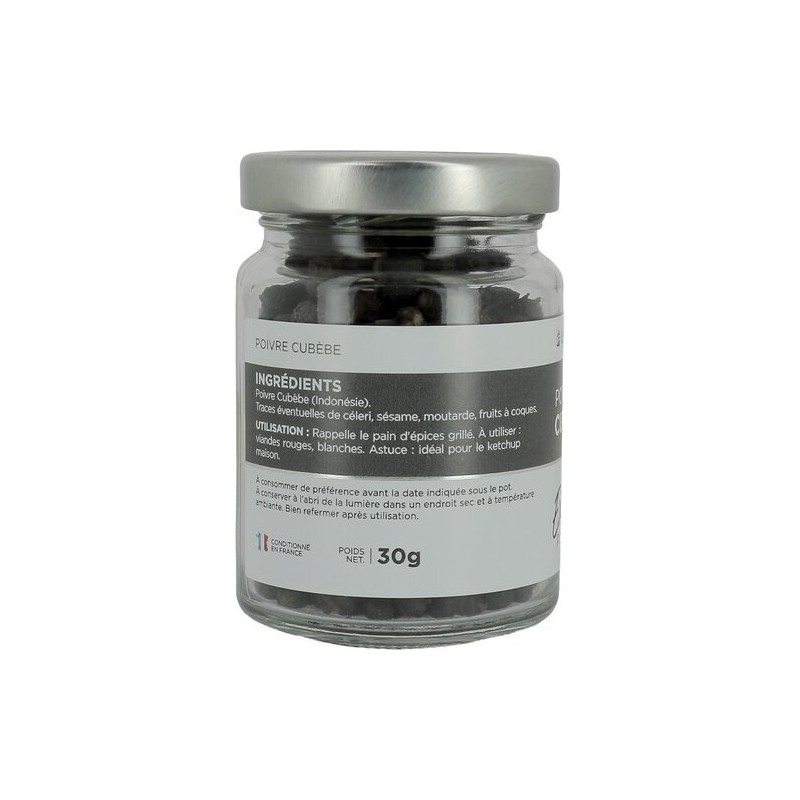 Le poivre Cubèbe est une épice singulière, encore confidentielle, qui intrigue dès la première utilisation. Originaire d’Indonésie, il se distingue par son arôme complexe et sa personnalité marquée. Son piquant reste léger, jamais agressif. En bouche, il développe des notes subtilement boisées et légèrement amères, proches du girofle.