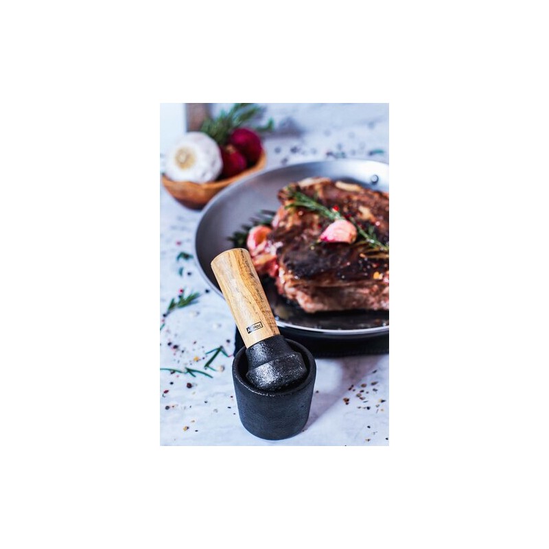 La fonte apporte une excellente stabilité pendant l’utilisation, même sur de petites quantités. Le manche en bois d’acacia du pilon offre un bon équilibre et un confort durable lors du travail des épices.