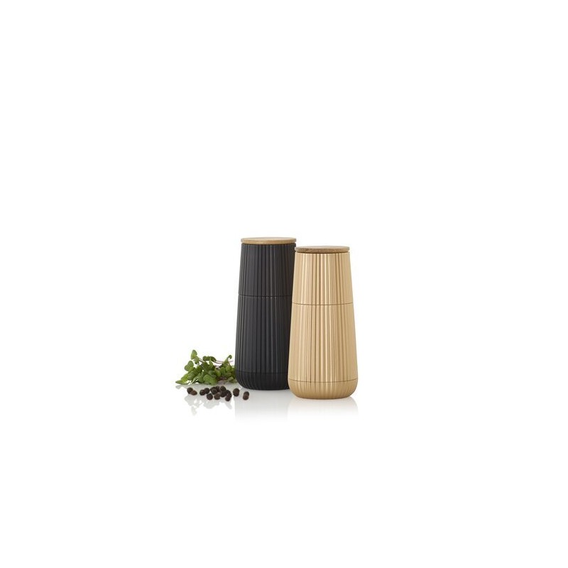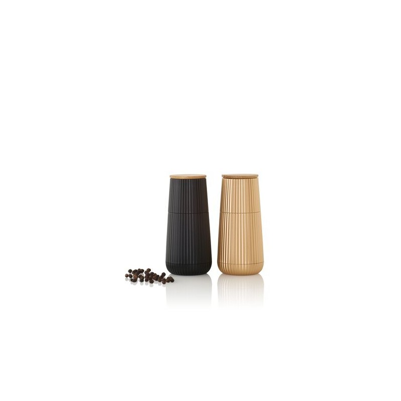 Le set de moulins Scape AdHoc associe design sculptural et précision de mouture. Leur silhouette élégante noir et or apporte une touche contemporaine à la table comme au plan de travail.