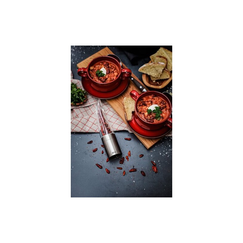 Le système PreciseCut différencie ce moulin à piment des modèles traditionnels. Les micro lames découpent les piments séchés avec précision, sans les écraser. Cette méthode permet de conserver la structure du piment et d’exprimer pleinement ses arômes. Le résultat est plus régulier, plus parfumé et mieux maîtrisé. Le capuchon protège le contenu de l’humidité et garde le plan de travail propre après usage. Ce moulin à piment convient aussi à d’autres épices séchées comme le poivre, le fenouil ou la coriandre.