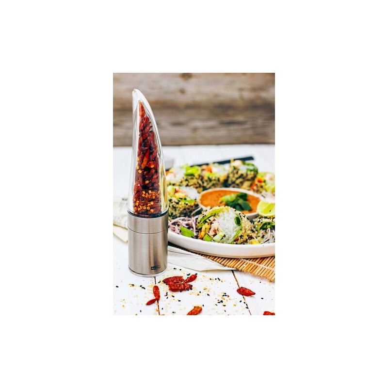 Le système PreciseCut différencie ce moulin à piment des modèles traditionnels. Les micro lames découpent les piments séchés avec précision, sans les écraser. Cette méthode permet de conserver la structure du piment et d’exprimer pleinement ses arômes. Le résultat est plus régulier, plus parfumé et mieux maîtrisé. Le capuchon protège le contenu de l’humidité et garde le plan de travail propre après usage. Ce moulin à piment convient aussi à d’autres épices séchées comme le poivre, le fenouil ou la coriandre.