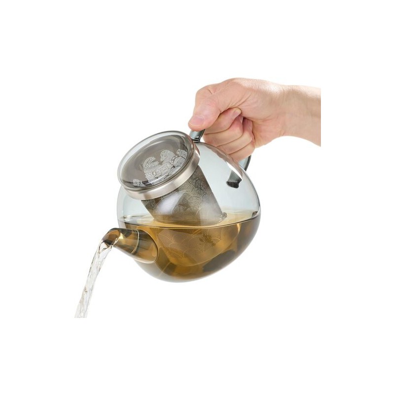 Son grand filtre est particulièrement adapté aux thés à larges feuilles, favorisant une extraction homogène. Le couvercle peut être utilisé comme support pour déposer le filtre après infusion et éviter les gouttes sur la table.