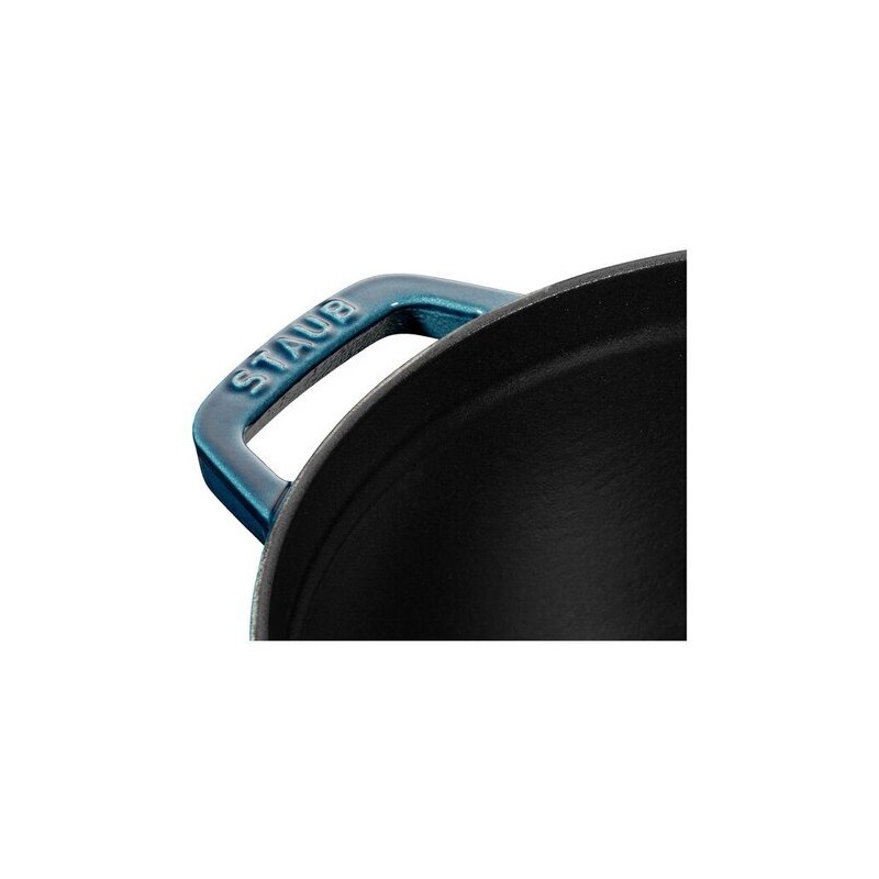 La cocotte en fonte ronde Staub La Mer Ø 24 cm est conçue pour cuisiner avec précision et convivialité. Sa capacité d’environ 3,8 litres convient parfaitement aux repas pour 4 personnes. Réalisée en fonte émaillée, elle assure une diffusion lente et homogène de la chaleur, idéale pour les plats mijotés, les rôtis, les volailles ou encore le pain maison. Son coloris La Mer, obtenu grâce à la finition Majolique, apporte une intensité et une brillance remarquables, qui subliment aussi bien la cuisine que la table.