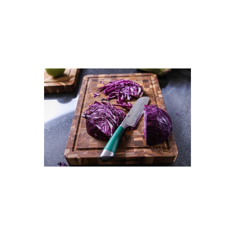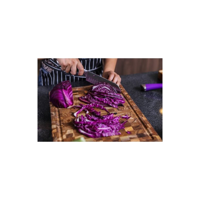 La structure en bois debout permet aux fibres du bois de se resserrer après le passage du couteau. Cette caractéristique réduit l’usure des lames et prolonge la durée de vie du billot. Le teck, réputé pour sa densité et sa résistance naturelle à l'humidité, est particulièrement adapté à un usage culinaire intensif. Ce billot bois debout teck avec rigole 42 x 30,5 cm constitue ainsi un support fiable pour les préparations quotidiennes comme pour les découpes plus exigeantes.