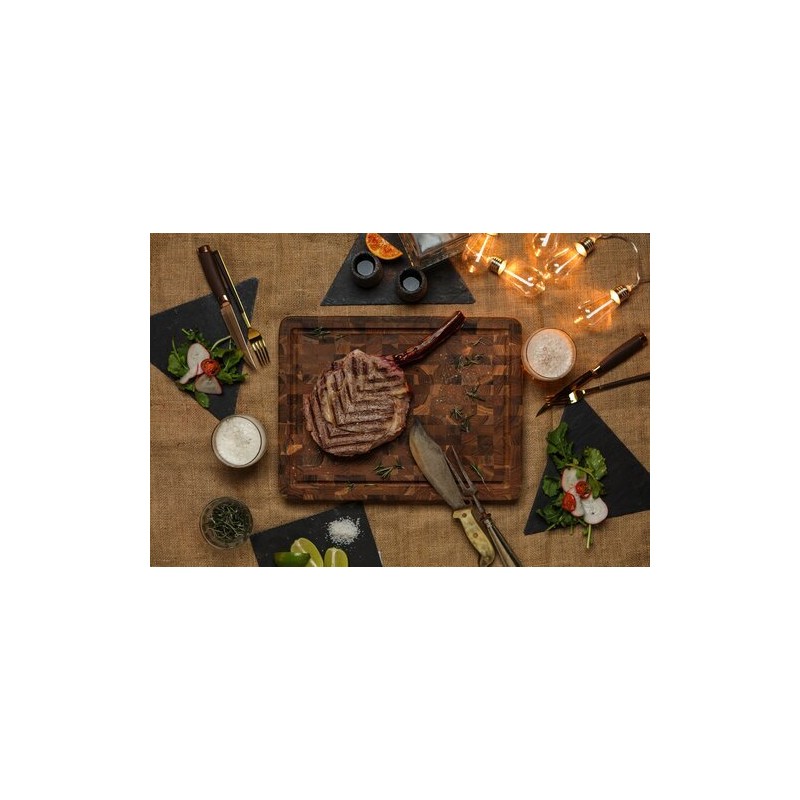 Billot en teck bois debout avec rigole pour découpe précise