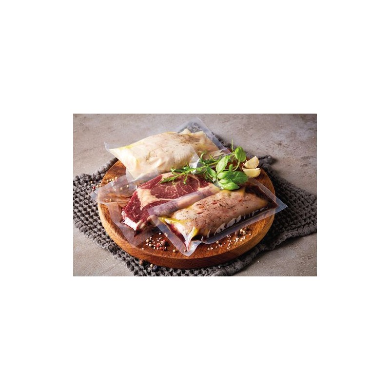 Complexe transparent polyamide/polyéthylène thermosoudable et non rétractable.