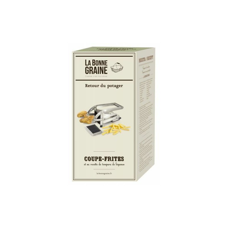Grâce à ses deux grilles interchangeables, vous choisissez facilement le calibre de coupe selon vos envies. En effet, 2 grilles de découpe sont incluses pour des frites de 9 x 9 mm ou 12 x 12 mm. Compact, efficace et simple d’entretien, ce coupe frites La Bonne Graine de la maison Tellier trouve naturellement sa place dans une cuisine tournée vers le fait-maison.