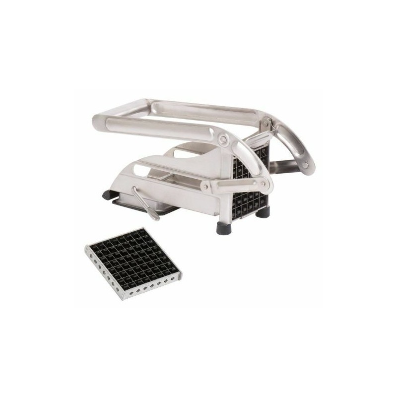 Le système de levier long permet de découper les pommes de terre avec une force minimale, même lorsqu’elles sont fermes. Les deux grilles interchangeables assurent une coupe régulière, idéale pour obtenir des frites bien calibrées qui cuiront de façon homogène. Le pied ventouse, associé aux pieds antidérapants, garantit une parfaite stabilité lors de l’utilisation, ce qui sécurise et fluidifie chaque geste.