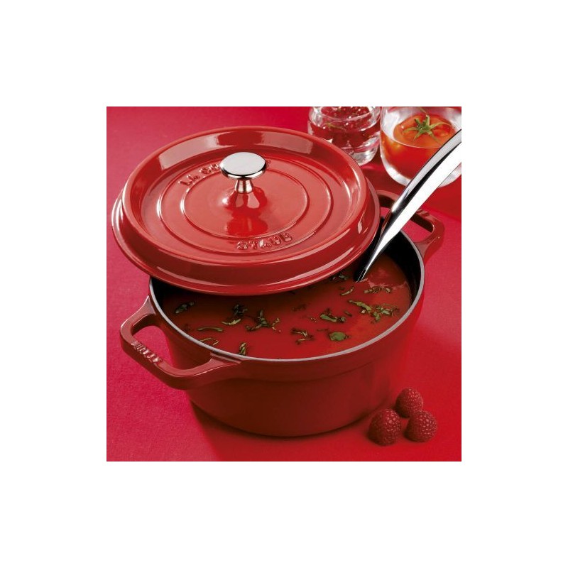Cette cocotte en fonte Staub se distingue par son design élaboré. La fonte retient parfaitement la chaleur, la diffuse lentement et la redistribue de façon homogène.