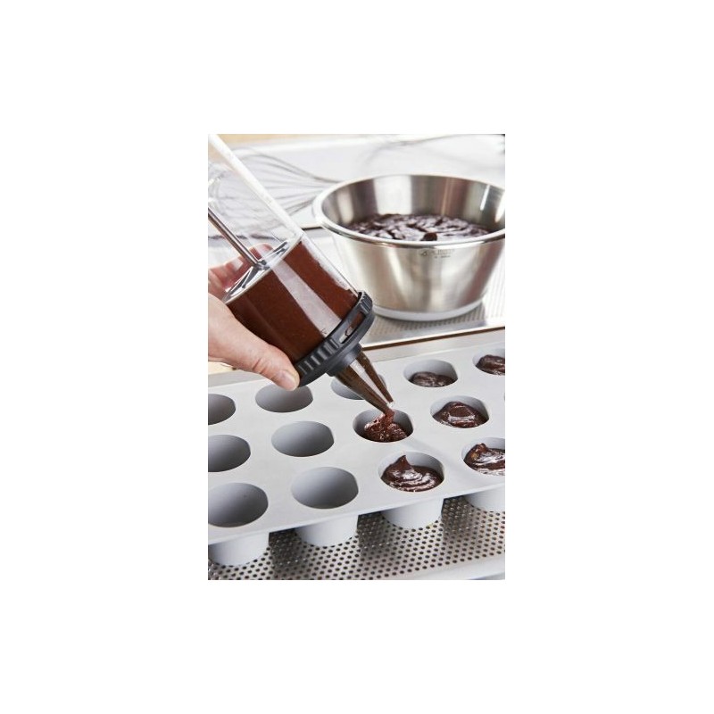 Ce tube simple d'utilisation a les mêmes usages que les poches : remplir, garnir et décorer mais avec l'avantage de pouvoir doser.