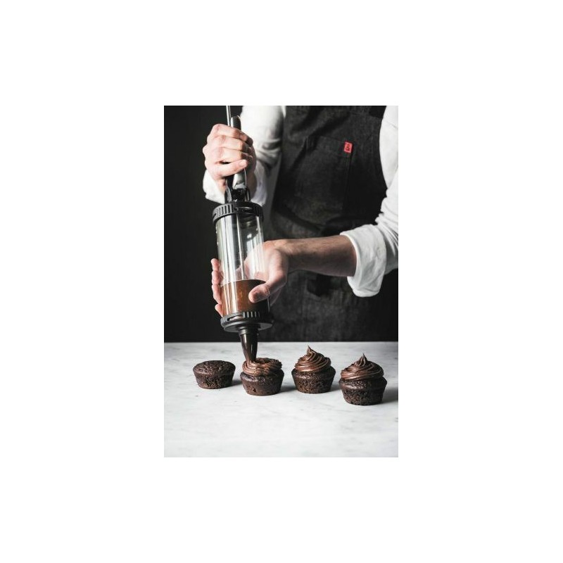 Piston à pression permettant de remplir, garnir, décorer et doser avec une grande précision.