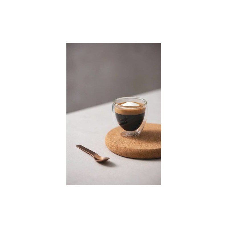 Verre à double paroi permettant de conserver plus longtemps la température des boissons chaudes ou froides. Et aucun risque de se brûler les doigts !