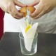 Rapprochez les 2 rabats immédiatement, sortez le "Poachie"du verre et immergez-le tout de suite dans l'eau frémissante.