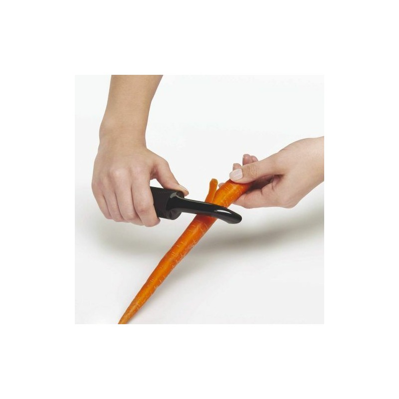 Sa lame lisse pivote afin de bien épouser les contours du légume et ne retirer ainsi que la peau sans gaspiller la chair.