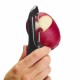 La pointe de l'éplucheur est muni d'un ergot pour retirer les imperfections ou les parties abîmées du fruit.